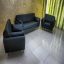 طقم انتريه جلد عالي الجودة والكثافة رجل معدن مكون من كنبه + 2 فوتيه