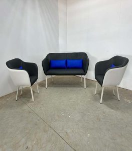 المكتب يتمتع بتصميم عصري وعملي يسمح بالوصول السهل إلى الأدوات المكتبية، مما يعزز من الإنتاجية والراحة. الكرسي المعدني يتميز بتصميم مريح مع دعم ممتاز للظهر بفضل التنجيد المتين، ويتميز بقابلية التعديل لتناسب وضعيات الجلوس المختلفة.